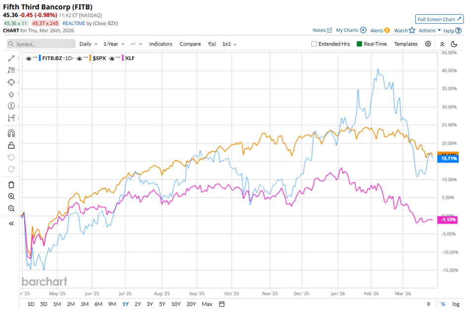 Shares of FITB have risen 13.2% over the past 52 weeks, lagging behind the S&P 500 Index's ($SPX) 14.6% increase. However, the stock has outpaced the State Street Financial Select Sector SPDR ETF’s (XLF) nearly 2% decline over the same period.