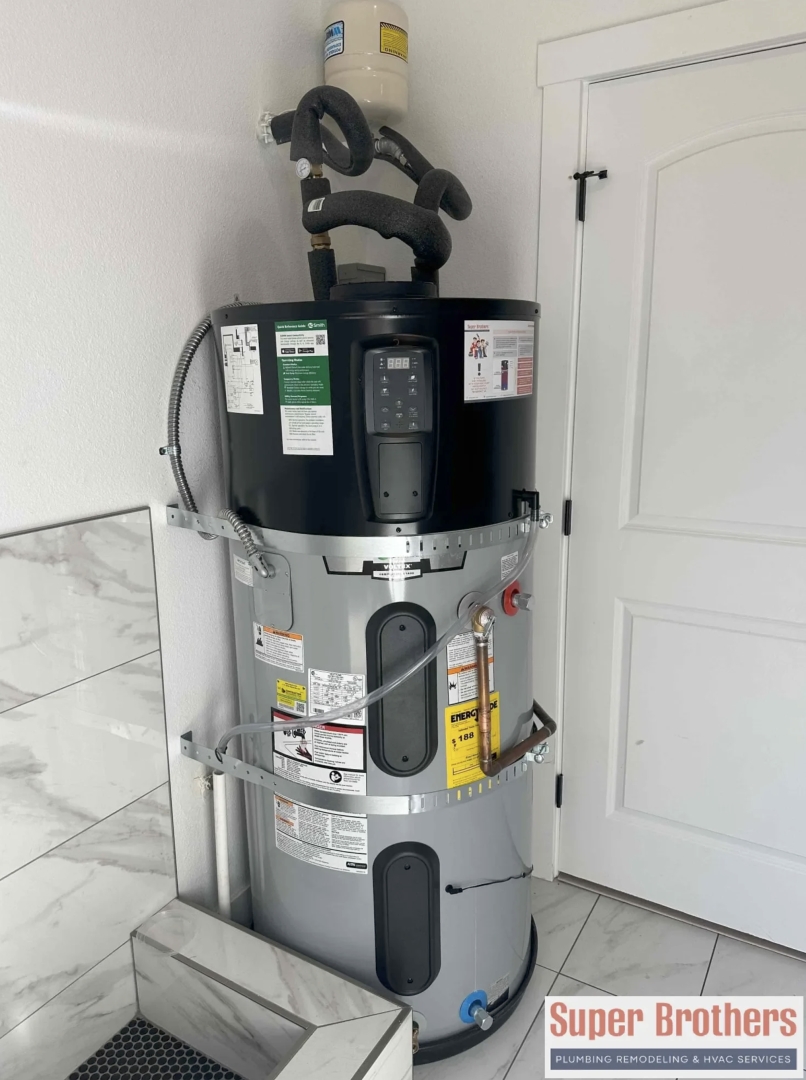 Super Brothers Plumbing, Heating & Air provides replacement and installation services for standard tank water heaters, tankless systems, and heat pump water heaters. Super Brothers Plumbing, Heating & Air also helps homeowners understand applicable rebate or incentive opportunities when available and provides guidance on related paperwork during the estimate process.