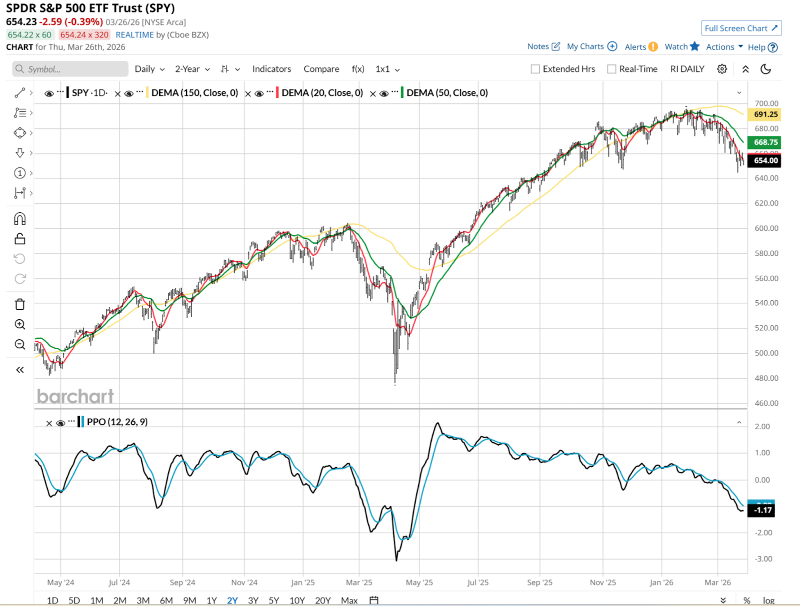 However, since ROAR is simply my automated spin on the actual price and trend data presented in charts like the ones from Barchart.com, it still helps to look at the chart itself. Here it is.